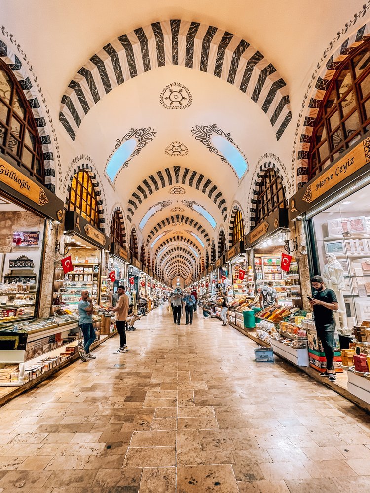 بازار ادویه با رنگهای گرم و بوی دلانگیز ادویههایی چون زعفران، فلفل قرمز، زیره و دارچین، فضایی خاطرهانگیز میآفریند. اینجا میتوانید انواع لوکوم (راحتالحلقوم) با طعمهای مختلف، باقلواهای تازه، میوههای خشک عجیب و غریب و انواع چای گیاهی را پیدا کنید. فروشندگان با رویی گشاده از شما استقبال میکنند و مشتاقند تا شما را با طعمها و عطرهای منحصر به فرد ترکیه آشنا کنند. بازار ادویه فرصتی عالی برای خرید هدیههای خوشعطر و طعم برای دوستان و خانواده و همچنین آشنایی با بخشی از سنتهای غذایی غنی ترکیه است.