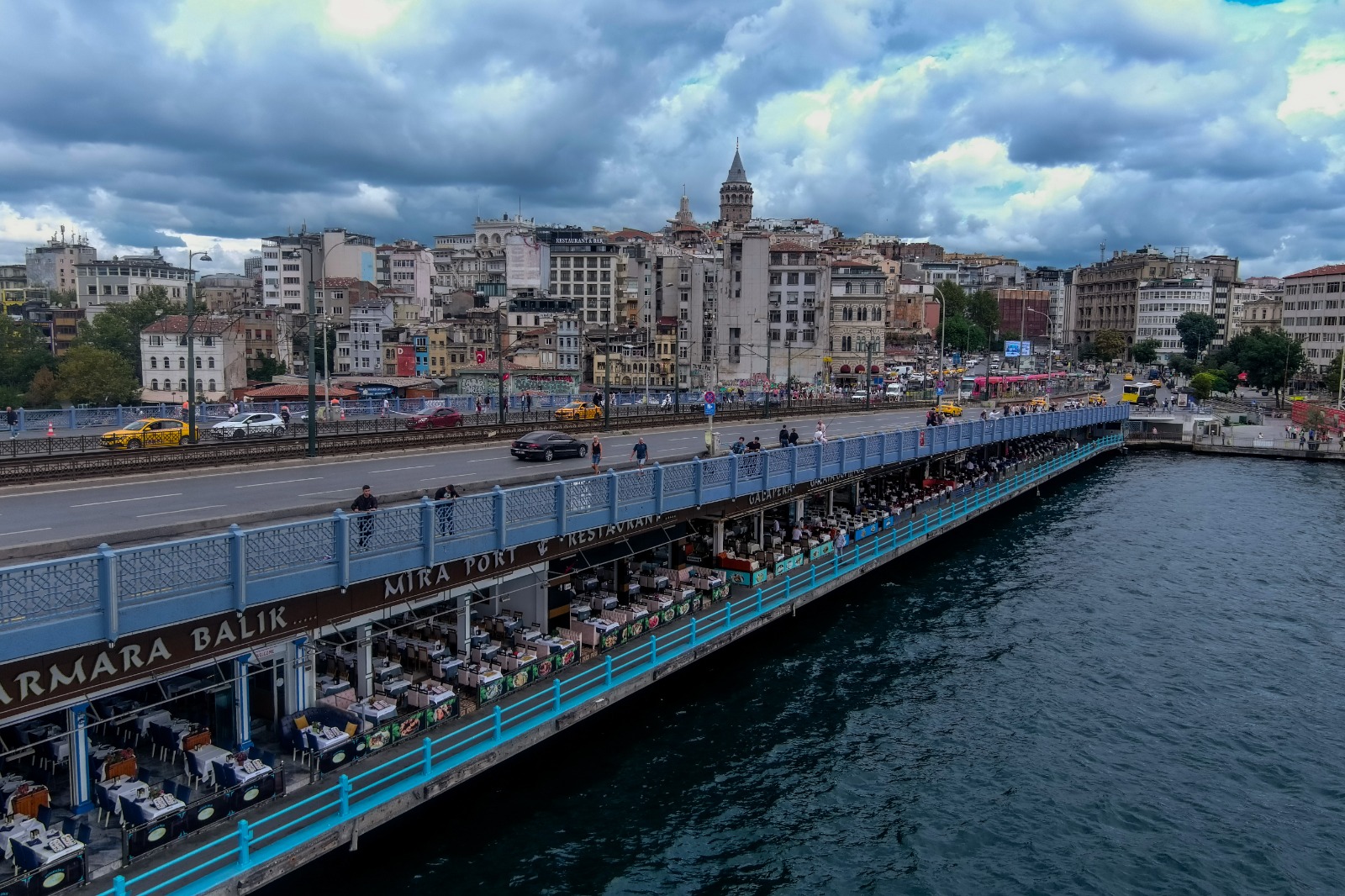• بالا و پایین پل: بر روی پل، منظره بینظیری از ماهیگیرانی را خواهید دید که ساعات طولانی در تلاش برای صیدند. این منظره، تصویری نمادین از زندگی روزمره استانبول است. زیر پل، رستورانهای شلوغ غذاهای دریایی قرار دارند؛ جایی عالی برای صرف بالیک اِکْمِک (ساندویچ ماهی) تازه در کنار آب.